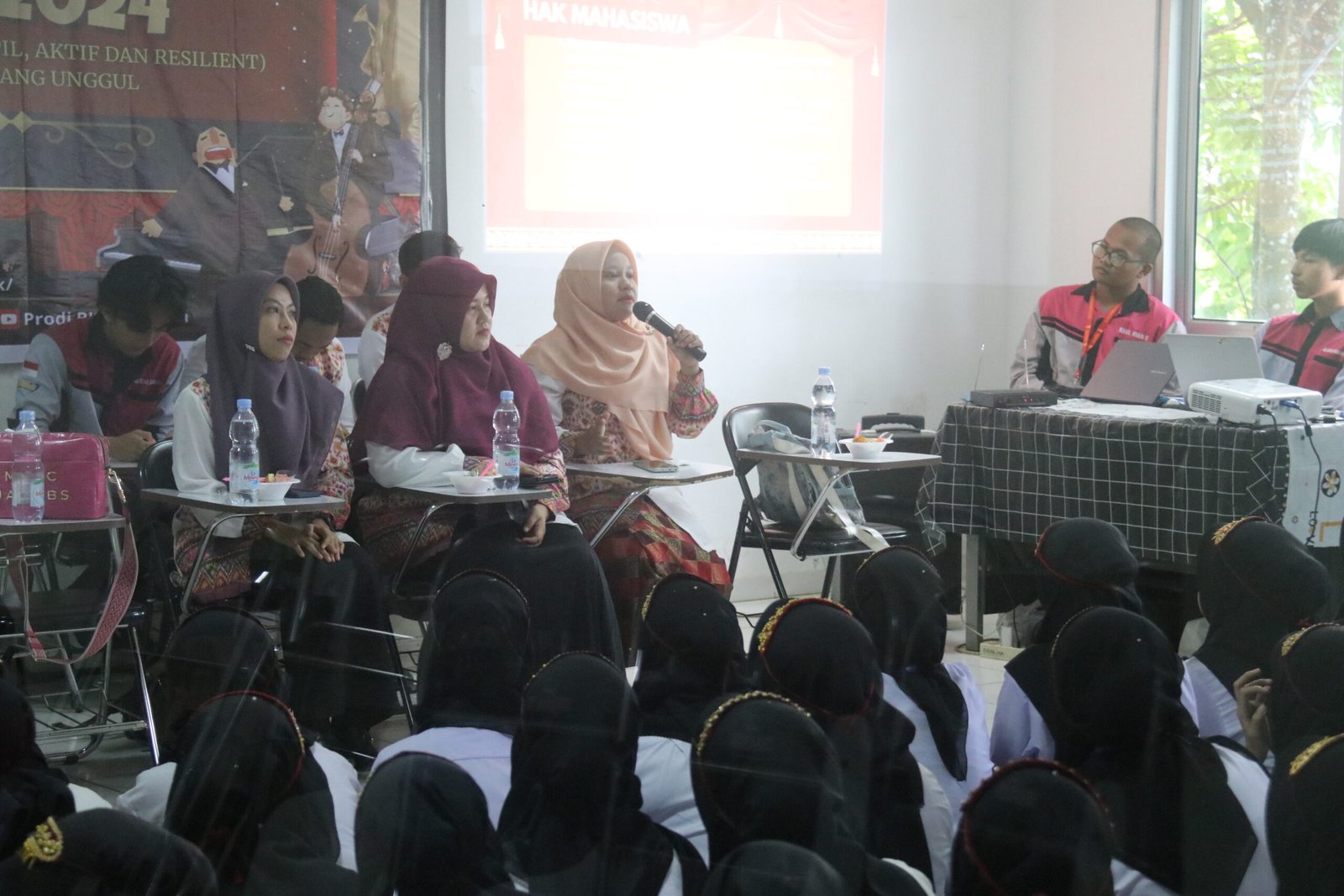 Selain aspek akademik, mahasiswa baru juga dikenalkan pada berbagai layanan kemahasiswaan yang disediakan untuk mendukung kesejahteraan mereka selama menempuh studi. Layanan ini mencakup pembimbingan akademik, layanan konseling, beasiswa, mekanisme penghentian studi sementara (stop out), putus studi, serta berbagai fasilitas lain yang mendukung kesejahteraan mahasiswa secara keseluruhan, yang disampaikan oleh Bapak Yola Eka Putri, M.Pd., Kons.